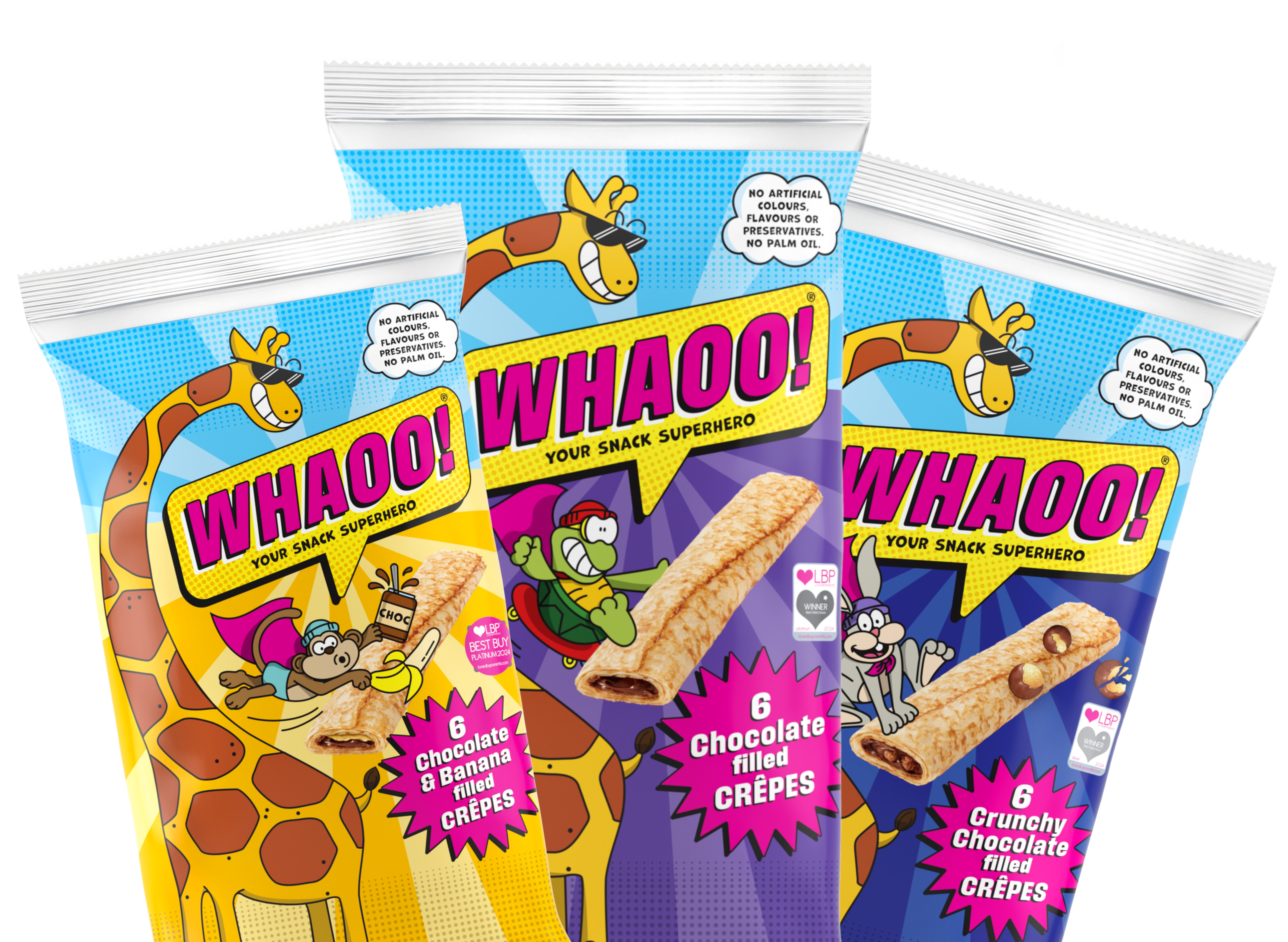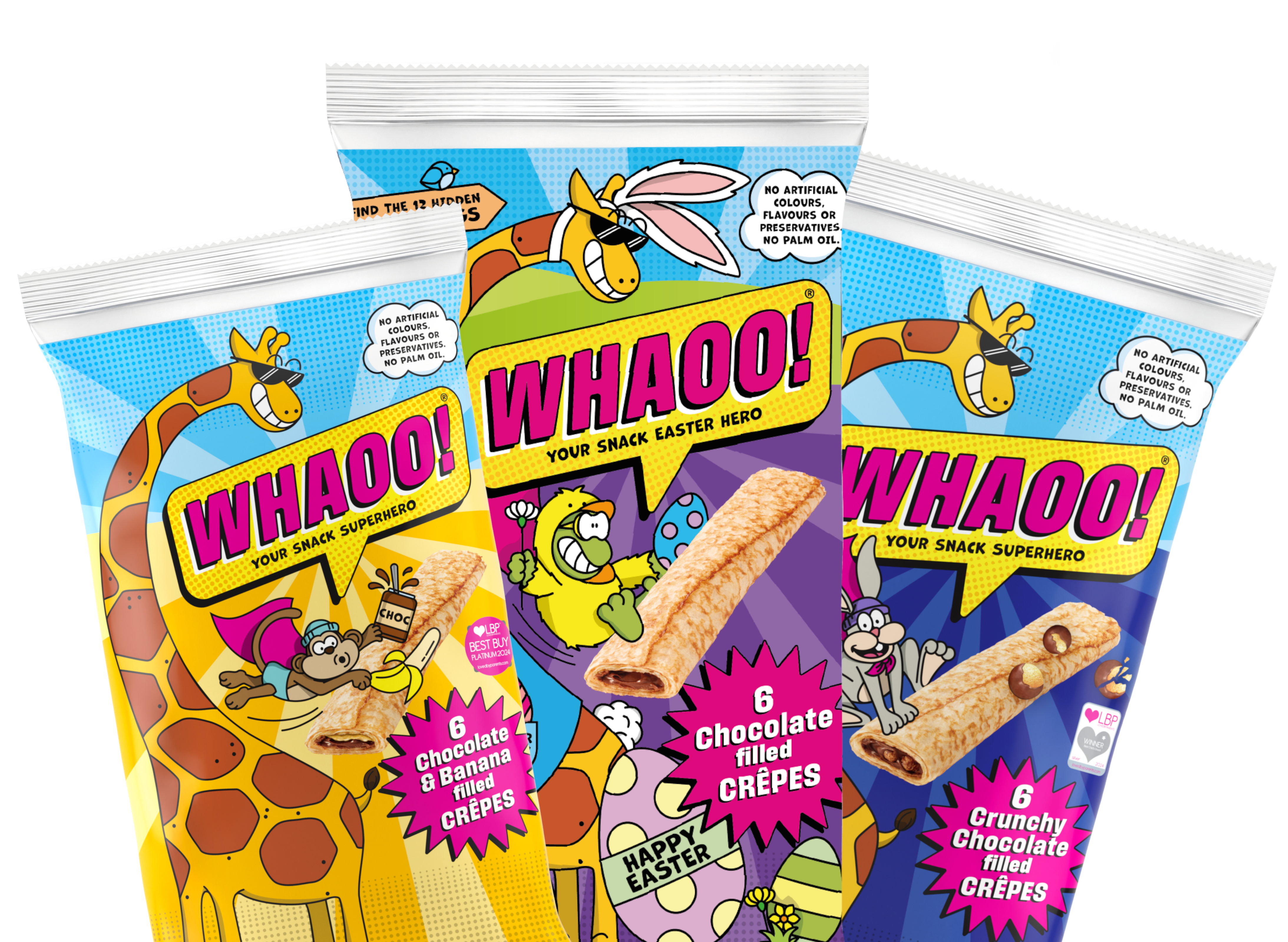 Soft, fluffy crêpes packed with chocolatey goodness, made with whole free-range eggs and real milk, with no artificial colours, flavours or preservatives, and completely palm oil free.
