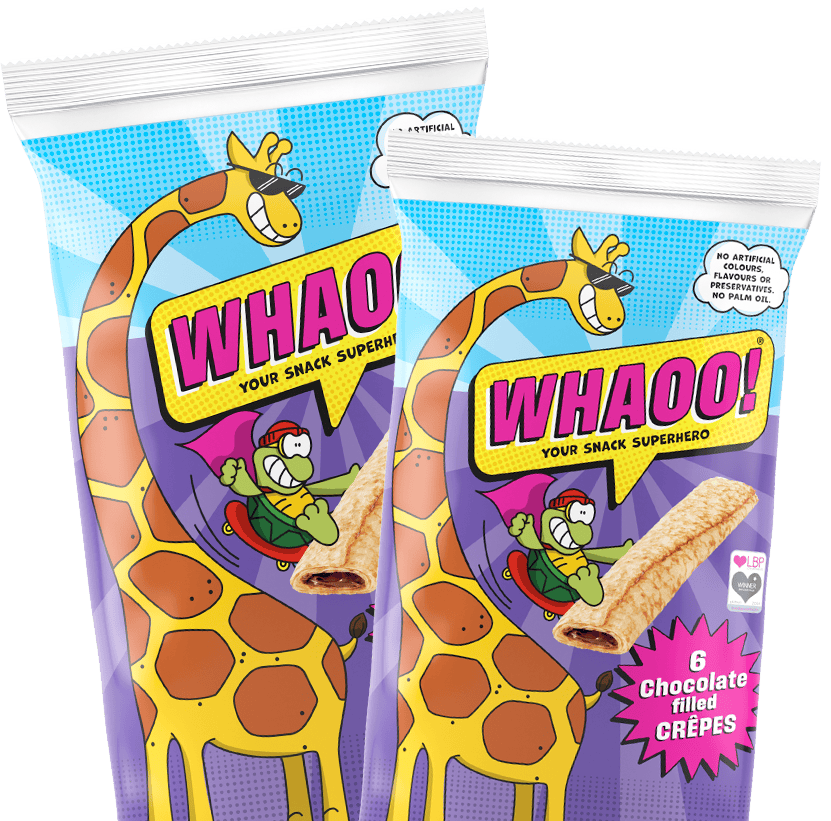 Our yummy crêpes are filled with delicious chocolate and a hint of hazelnut. Made with quality ingredients, including whole free-range eggs and cow’s milk, they contain no artificial colours, flavours, or preservatives, and are completely palm oil free.